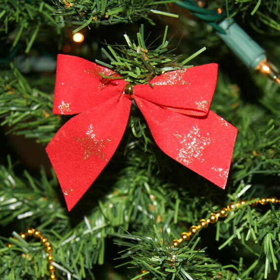 超激安!!とってもかわいいリボンのクリスマスツリーオーナメントです!お店やイベントなどのコーディネイトにも大活躍!!クリスマスレッド&スターパウダーリボン(ベルベット調)12個入